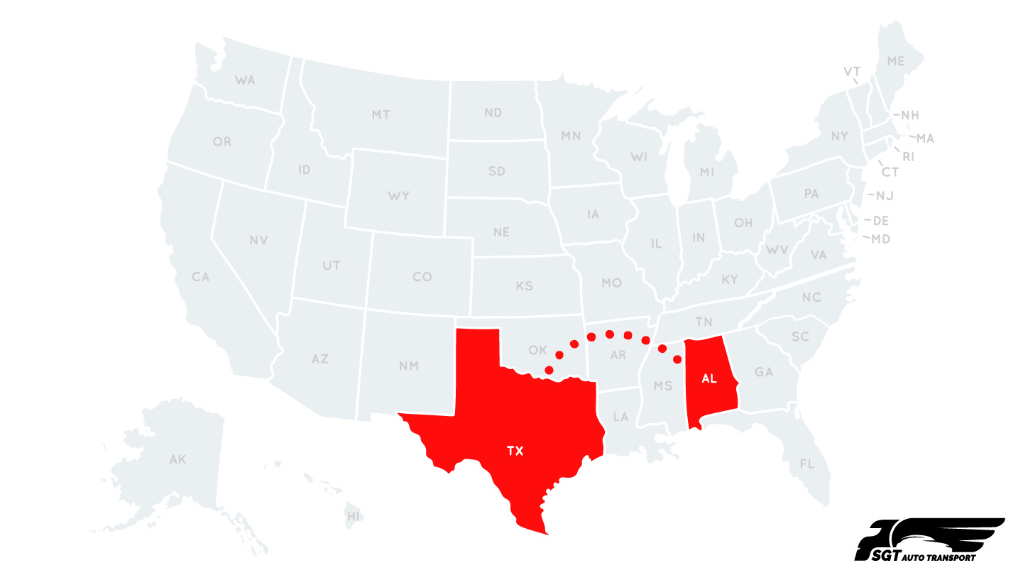 Get an Instant Quote - Calculate your transportation cost and Ship your vehicle from Alabama to Texas with SGT Auto Transport!