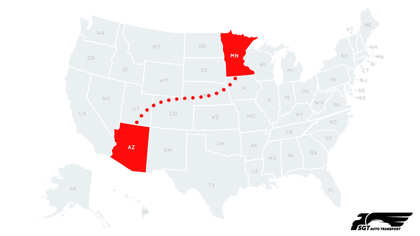 Vehicle transport from Arizona to a Minnesota destination will be a 3 to 4 day job, with shipping costs of $999 to $1199
