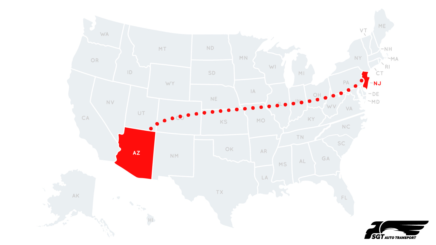 Get an Instant Quote - Calculate your transportation cost and Ship your vehicle from Arizona to New Jersey with SGT Auto Transport!