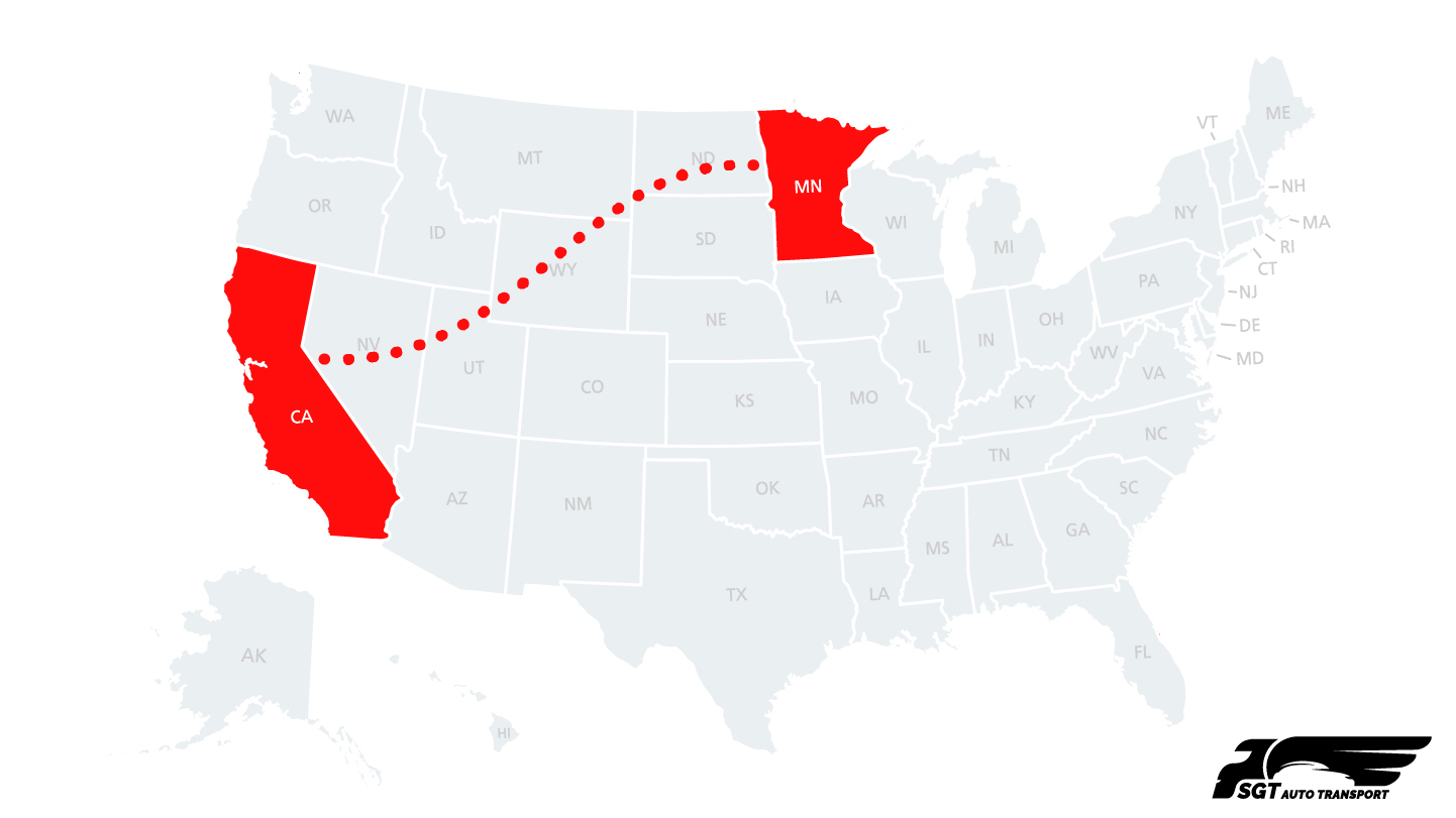 Due to the increased demand for cross-country car transport, SGT Auto Transport has increased its coverage and now provides its full range of services to all customers looking for low-cost auto transport from California to Minnesota.