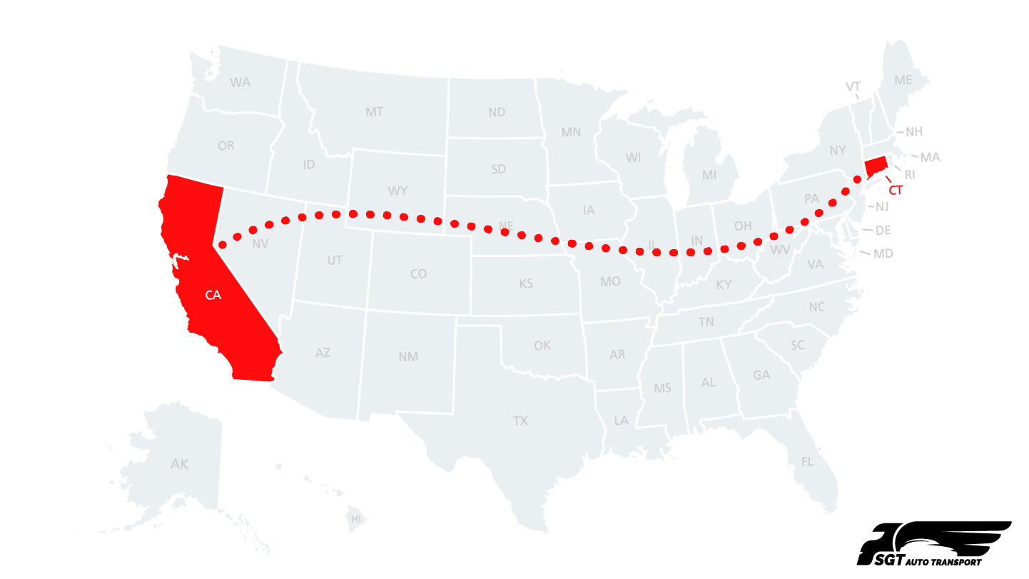| High-Demand Westbound Route | Connecticut to California is a commonly serviced long-distance auto transport corridor. |