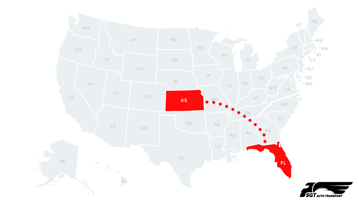 Get an Instant Quote - Calculate your transportation cost and Ship your vehicle from Florida to Kansas with SGT Auto Transport!