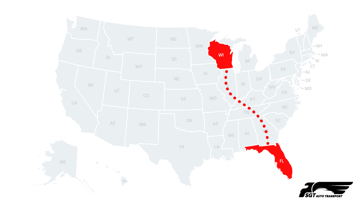 | High-Demand Northbound Route | Florida to Wisconsin is a frequently serviced interstate auto transport corridor. |