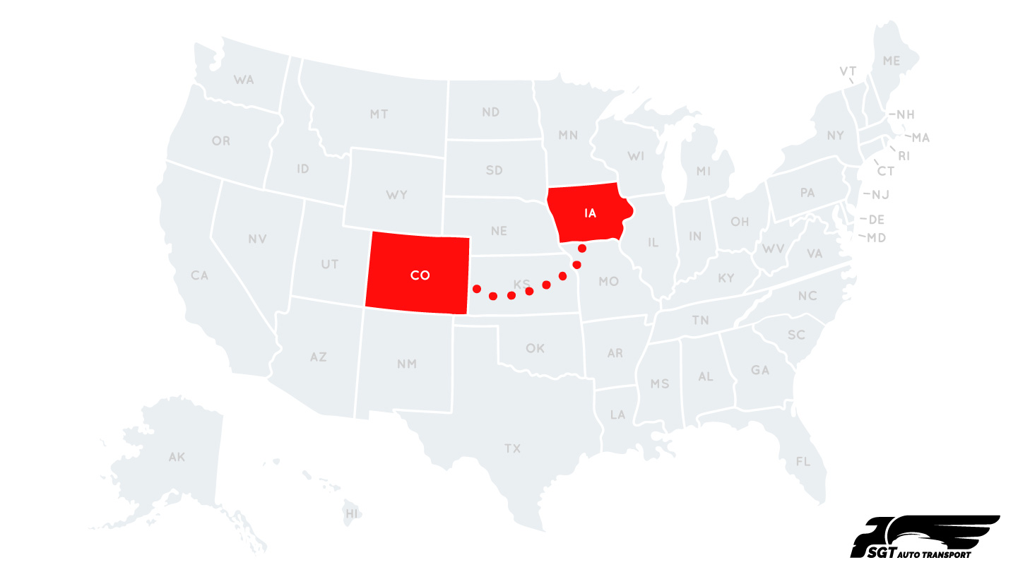 Get an Instant Quote - Calculate your transportation cost and Ship your vehicle from Iowa to Colorado with SGT Auto Transport!