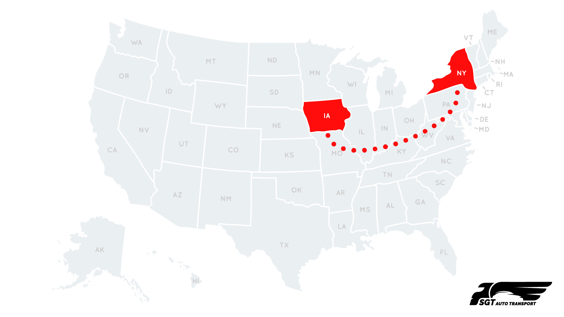 Get an Instant Quote - Calculate your transportation cost and Ship your vehicle from Iowa to New York with SGT Auto Transport!