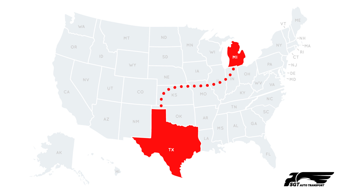 Get an Instant Quote - Calculate your transportation cost and Ship your vehicle from Michigan to Texas with SGT Auto Transport!
