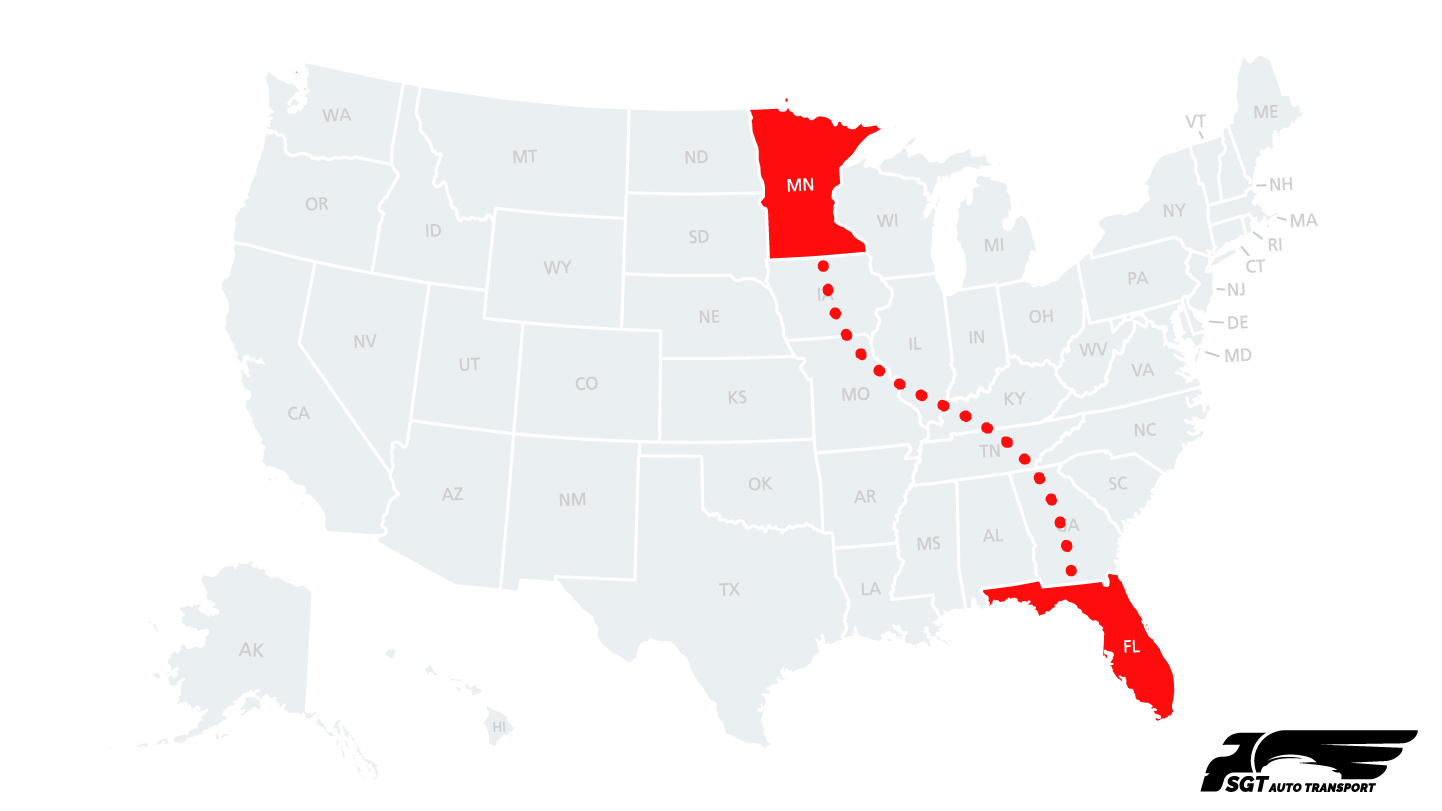 | High-Demand Southbound Route | Minnesota to Florida is a frequently serviced long-haul auto transport corridor. |