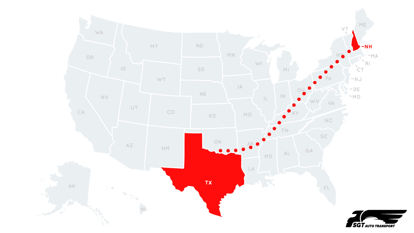 Get an Instant Quote - Calculate your transportation cost and Ship your vehicle from New Hampshire to Texas with SGT Auto Transport!