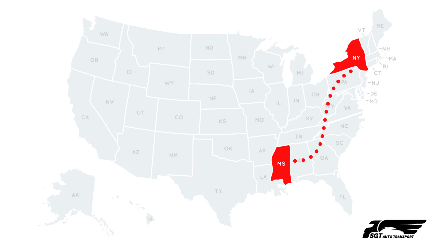 Get an Instant Quote - Calculate your transportation cost and Ship your vehicle from New York to Mississippi with SGT Auto Transport!