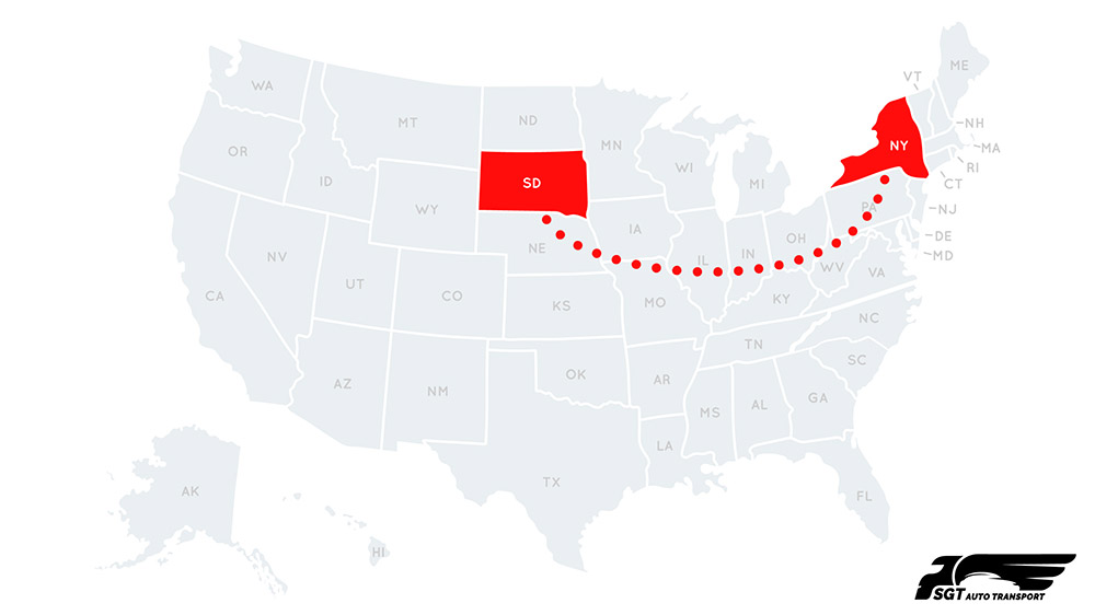 Get an Instant Quote - Calculate your transportation cost and Ship your vehicle from New York to South Dakota with SGT Auto Transport!