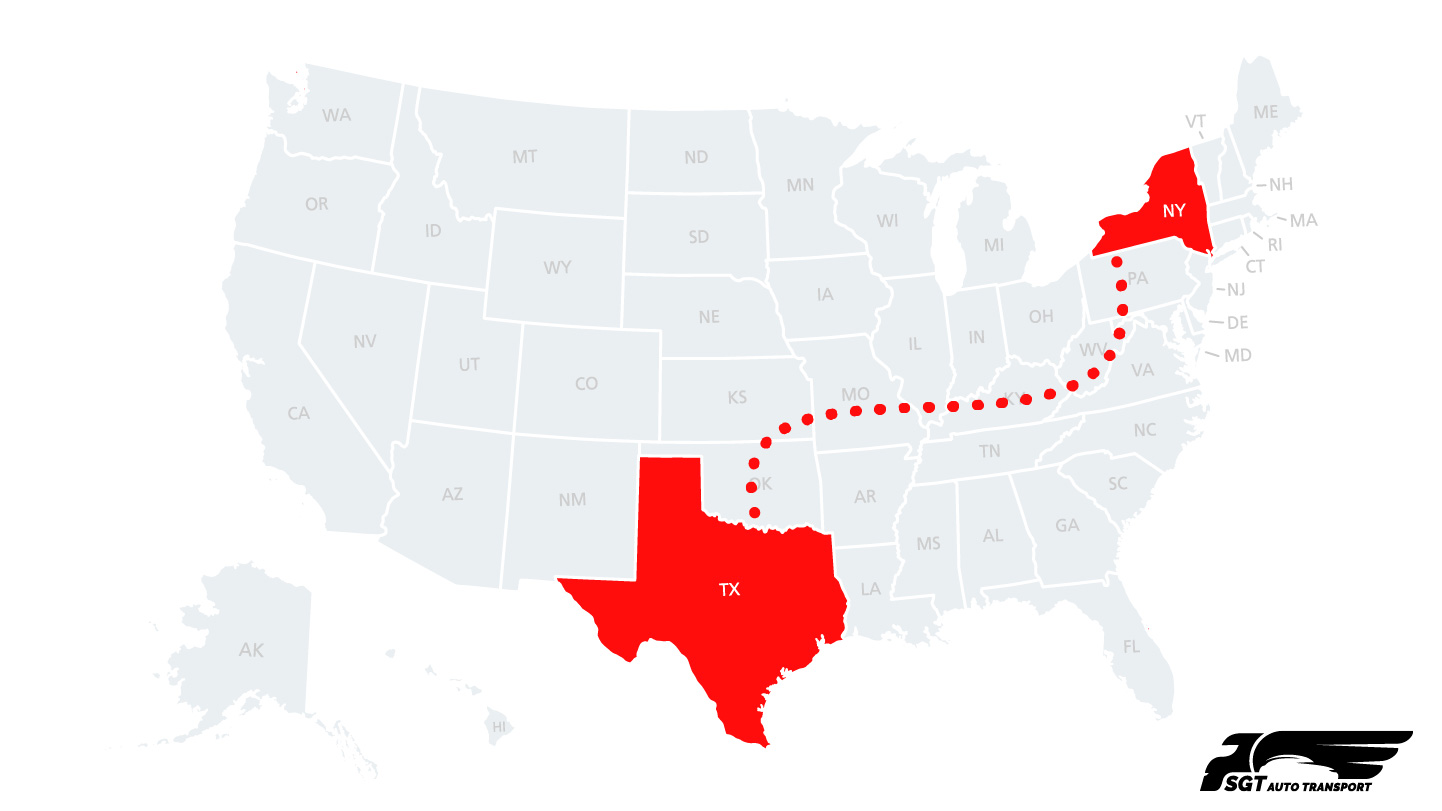 | High-Demand Southbound Route | New York to Texas is a frequently serviced auto transport corridor. |