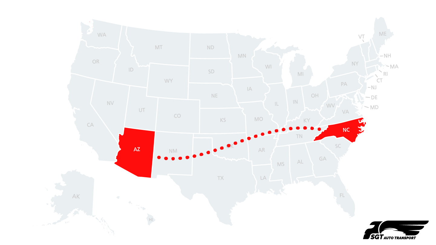 | Major Southeast-to-Southwest Route | North Carolina to Arizona is a commonly serviced auto transport corridor connecting the Southeastern United States with the Southwest. |