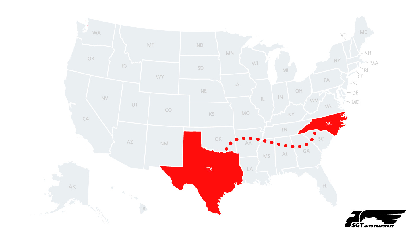 | High-Demand Southwest-Bound Route | North Carolina to Texas is a frequently serviced interstate auto transport corridor. |