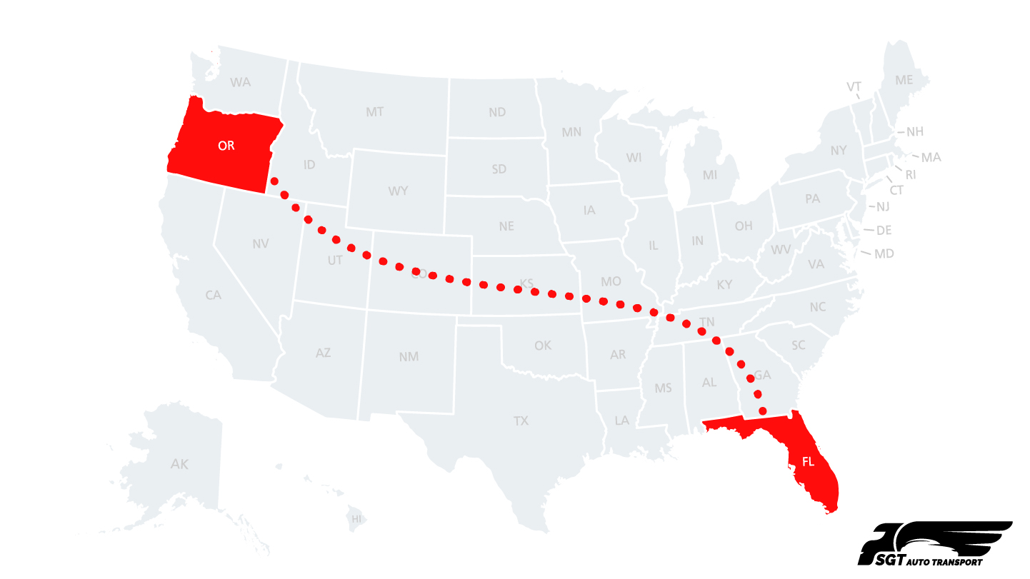 | Major Coast-to-Coast Shipping Route | Oregon to Florida is a high-demand auto transport corridor connecting the Pacific Northwest with the Southeastern United States. |