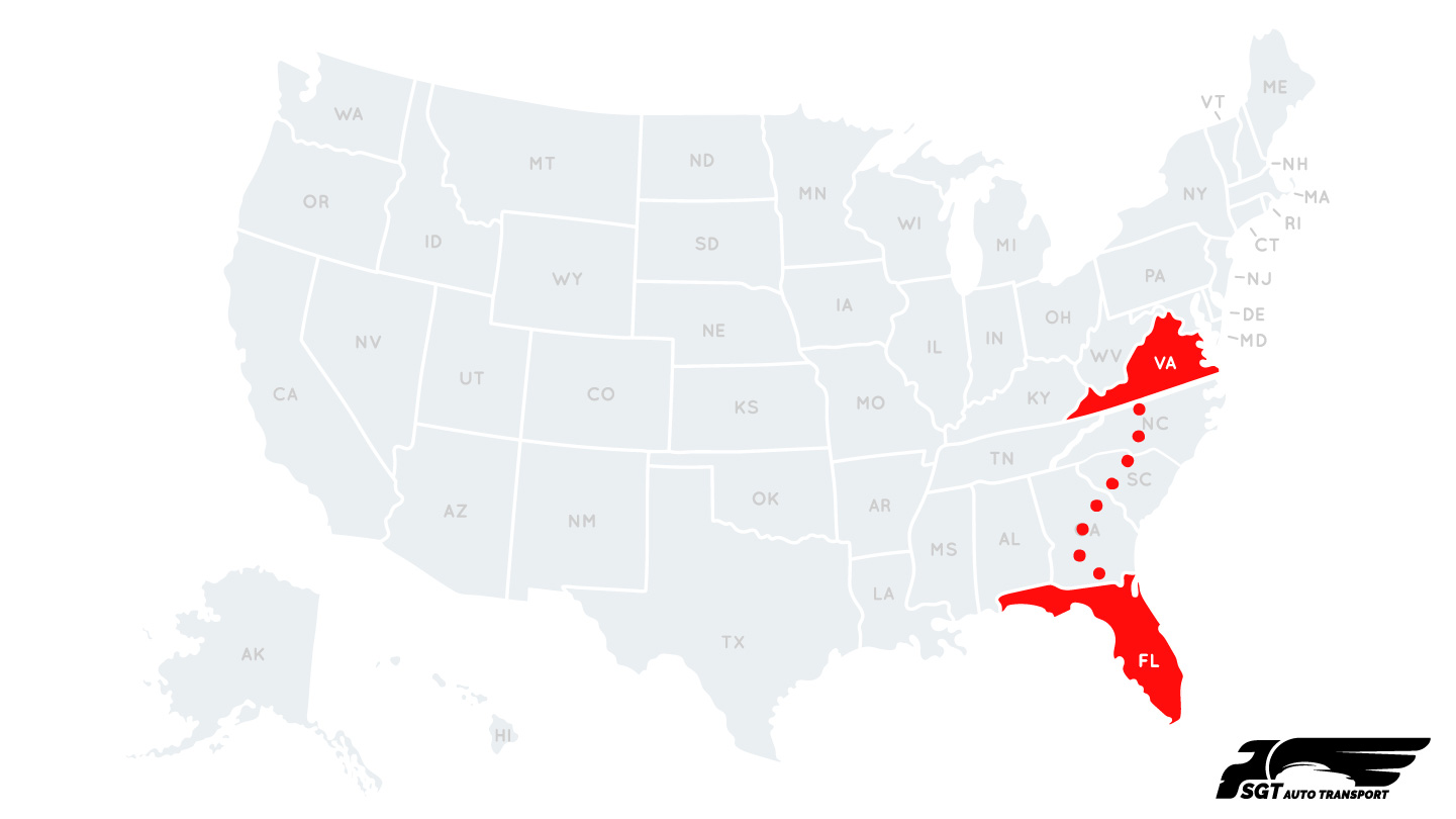Getting a vehicle from Florida to Virginia is a fairly straight shot up the Interstate along the eastern seaboard. This should take no more than 2 days, and you should expect to spend $549 to $749.