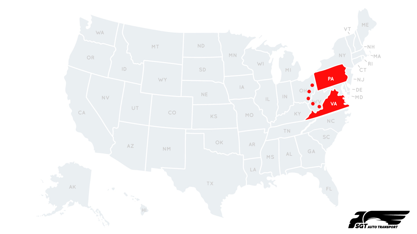 Get an Instant Quote - Calculate your transportation cost and Ship your vehicle from Virginia to Pennsylvania with SGT Auto Transport!